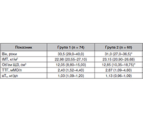 Актуальність. Вивчення постковідних імунних змін, у тому числі автоімунних уражень щитоподібної залози (ЩЗ), залишається одним з пріоритетних напрямів сучасної ендокринології. Мета: порівняти структурно-функціональні та імунні показники у хворих на автоімунний тиреоїдит (АІТ) залежно від перенесеного COVID-19. Матеріали та методи. Проведено ретроспективний аналіз перебігу АІТ залежно від перенесеного COVID-19 з оцінкою рівня тиреотропного гормону (ТТГ), тиреоїдних гормонів та антитиреоїдних антитіл. У групу дослідження включено 200 пацієнтів з АІТ: 193 жінки (96,5 %) і 7 чоловіків (3,5 %) віком від 18 до 62 років (середній вік становив 33,80 ± 0,60 року). Усі хворі були розподілені на 3 групи: група 1 — пацієнти, у яких АІТ було встановлено до перенесеного COVID-19 (73 особи), група 2 — пацієнти, у яких АІТ діагностовано після COVID-19 (111 осіб), і контрольна група — пацієнти з АІТ, які не хворіли на COVID-19 (16 осіб). Здійснено визначення рівнів ТТГ, вільного тироксину (вТ4), а також антитіл до тиреоїдної пероксидази (АТ-ТПО), тиреоглобуліну (АТ-ТГ) і рецептора ТТГ (АТ-рТТГ) методом хемілюмінесцентного імуноаналізу. Статистичну обробку даних проведено з використанням пакета статистичних програм Microsoft Excel і MedCalc Statistical Software v.19.7.2. Для порівняння груп застосовували критерій Манна — Уїтні; відмінності вважали значущими при p < 0,05. Результати. Після перенесеного COVID-19 у пацієнтів спостерігається вірогідне (p < 0,05) збільшення рівня АТ-рТТГ, що може свідчити про активацію автоімунних процесів у ЩЗ навіть за відсутності явної тиреоїдної дисфункції. Об’єм ЩЗ вірогідно (p < 0,05) збільшується після COVID-19, що може бути проявом постзапальних або реактивних змін паренхіми залози у відповідь на вірусне ураження. Висновки. Рівні класичних маркерів автоімунного тиреоїдиту (АТ-ТПО, АТ-ТГ) залишалися стабільними і не відрізнялися між групами, що вказує на ймовірну іншу імунну мішень або механізм ураження ЩЗ після COVID-19.