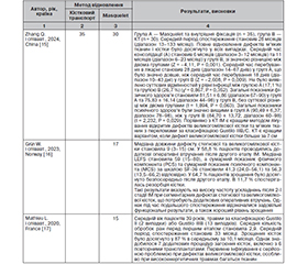 Актуальність. Дефекти кісток (ДК) — патологічний стан, що характеризується втратою об’єму кісткової тканини, який не може самостійно відновитись навіть за умови адекватних заходів та хірургічної стабілізації. У літературі такий стан характеризується як критичний дефект: довжина понад 2 см та втрата кісткової маси понад 50 %. ДК розподіляються на первинні або вторинні та є наслідком доволі широкого за своєю природою кола чинників: пухлини опорно-рухового апарату, інфекції, високоенергетичні пошкодження, остеофіброзні дисплазії або вроджені вади (Adams-Oliver syndrome). З початком повномасшабної агресії головним чинником як первинних, так і вторинних ДК стали бойові ураження (вогнепальні та мінно-вибухові), які виникають у результаті високоенергетичного комбінованого впливу та призводять до поліструктурних пошкоджень. Мета: порівняти клінічні результати методики Masquelet та методу транспортування кісток при лікуванні пацієнтів з сегментарними дефектами довгих кісток кінцівок. Матеріали та методи. У двох базах даних (PubMed, Embase) було проаналізовано сучасну літературу щодо лікування дефектів довгих трубчастих кісток за період з 2016 по 2025 р. з використанням методу Ілізарова — кістковий транспорт та Masquelet — індукована мембрана, за ключовими словами: bone defect, nonunion, bone transport, Masquelet method, complications. Результати. Найпоширенішими недоліками та ускладненнями при кістковому транспорті є довготривале використання зовнішньої конструкції, інфекція місця закріплення штифта (65,96 %), аксіальне відхилення (40,78 %), скутість суглоба (23,76 %), стискання м’яких тканин (22,34 %) та затримка зрощення місця стикування (13,48 %). Для зменшення їх кількості запропоновано цілу низку різнопланових удосконалень. Зокрема, набирає популярності трифокальний спосіб, застосування односторонніх зовнішніх фіксаторів з інтрамедулярними фіксаторами, інтрамедулярний кабельний транспорт, транспортування кістки за допомогою магнітних інтрамедулярних стрижнів. Позитивні результати при застосуванні методу Masquelet становлять близько 86 % проти 95 % при кістковому транспорті, однак перший демонструє переваги у нижчій вартості госпіталізації, коротшому часі остаточного зрощення до повного навантаження, нижчій частоті ускладнень та кращій післяопераційній якості життя. Висновки. Метод кісткового транспорту та Masquelet є сучасними найбільш вживаними технологіями при лікуванні пацієнтів з дефектами кісткової тканини. Позитивні результати при застосуванні цих методик становлять близько 86–95 %, що з урахуванням поліструктурних уражень є доволі значущим показником. Кожен метод характеризується своїми позитивними сторонами та недоліками, які зумовлені особливостями його реалізації та тяжкістю пошкодження, що потребує їх застосування за чітко визначеними показаннями.